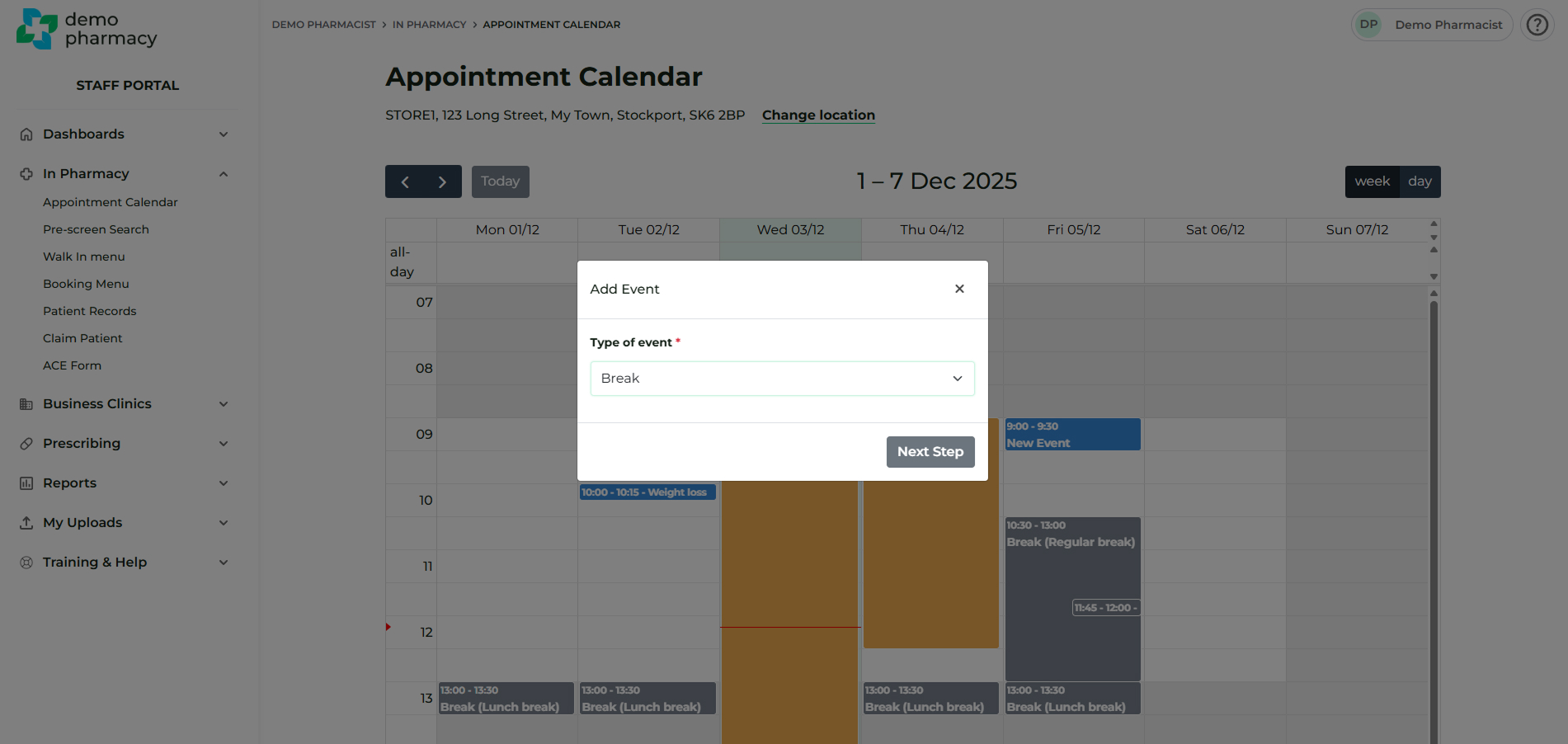 - Add a new pharmacy appointment.