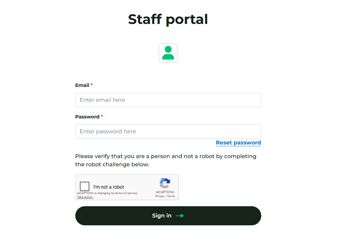 Once your registered account has been approved by Head Office, navigate to the staff portal at the following link: