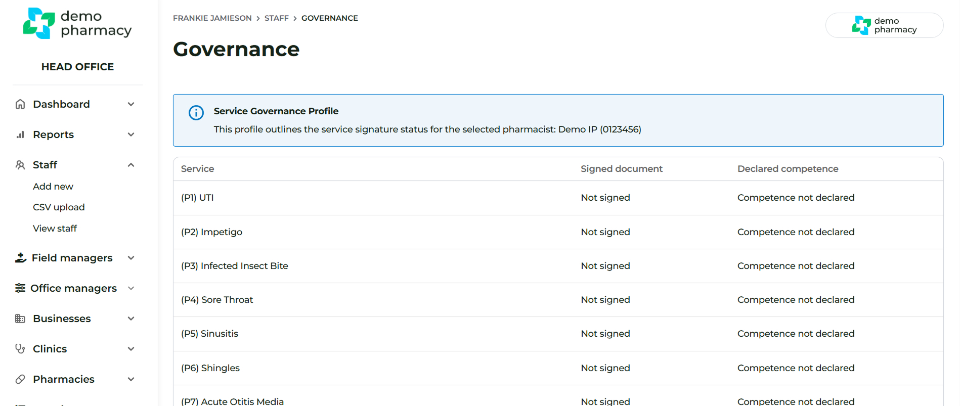 As the Authorizing Manager, you can monitor the clinical compliance status of individual staff members and generate comprehensive governance reports across your entire organization.
