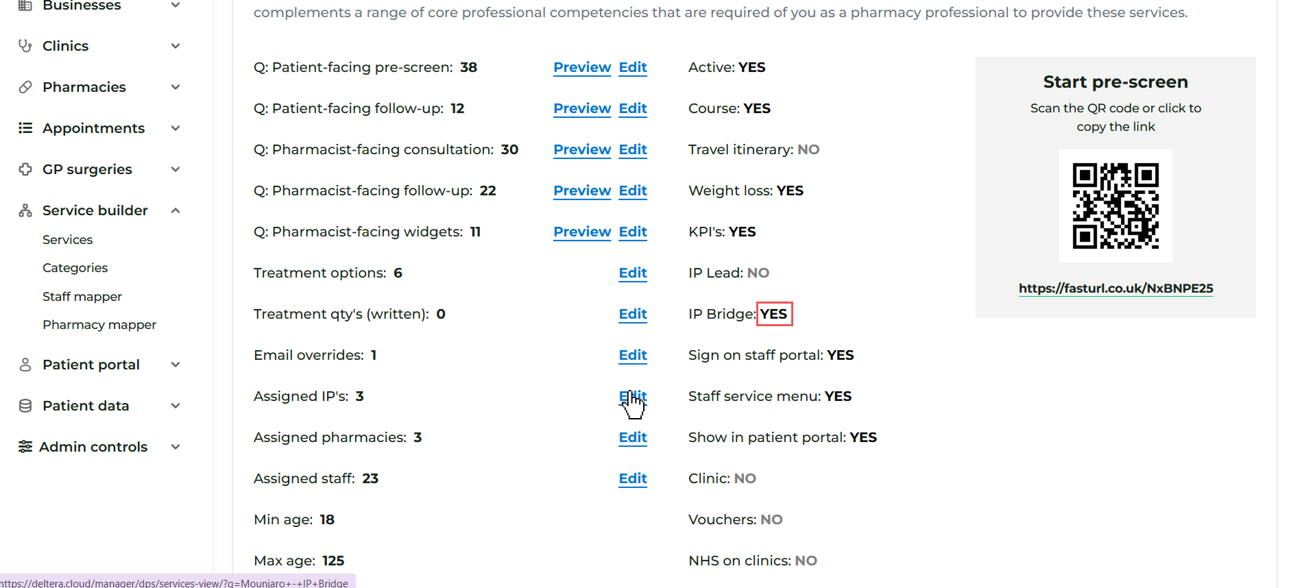 If a service is configured to use the IP Bridge functionality, you must specifically assign the authorised Independent Prescribers to that service.