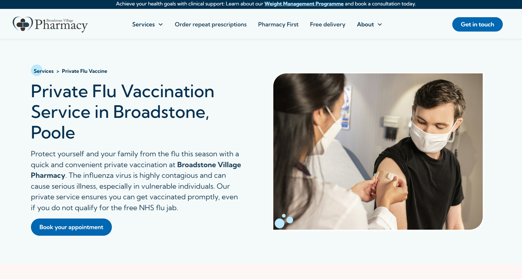 You can see an example of this in action with Broadstone Village Pharmacy, where we integrated their service descriptions directly with the booking platform for a seamless user experience.
