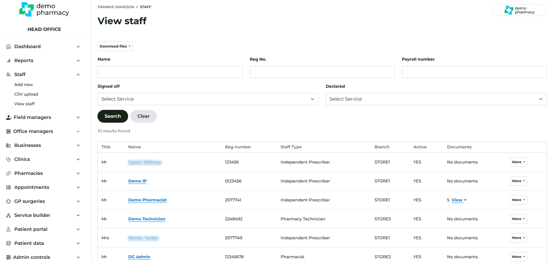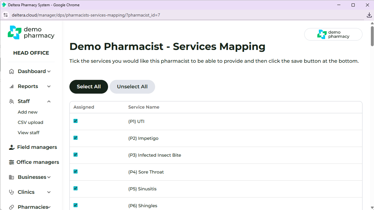 As a Head Office user, you control the registration, activation, and service permissions for all staff members accessing the Deltera system.