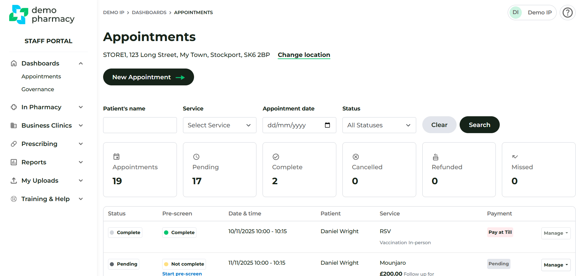 - Correcting the Location: If the location shown is incorrect, click the Change location link provided to select the correct pharmacy from the list.