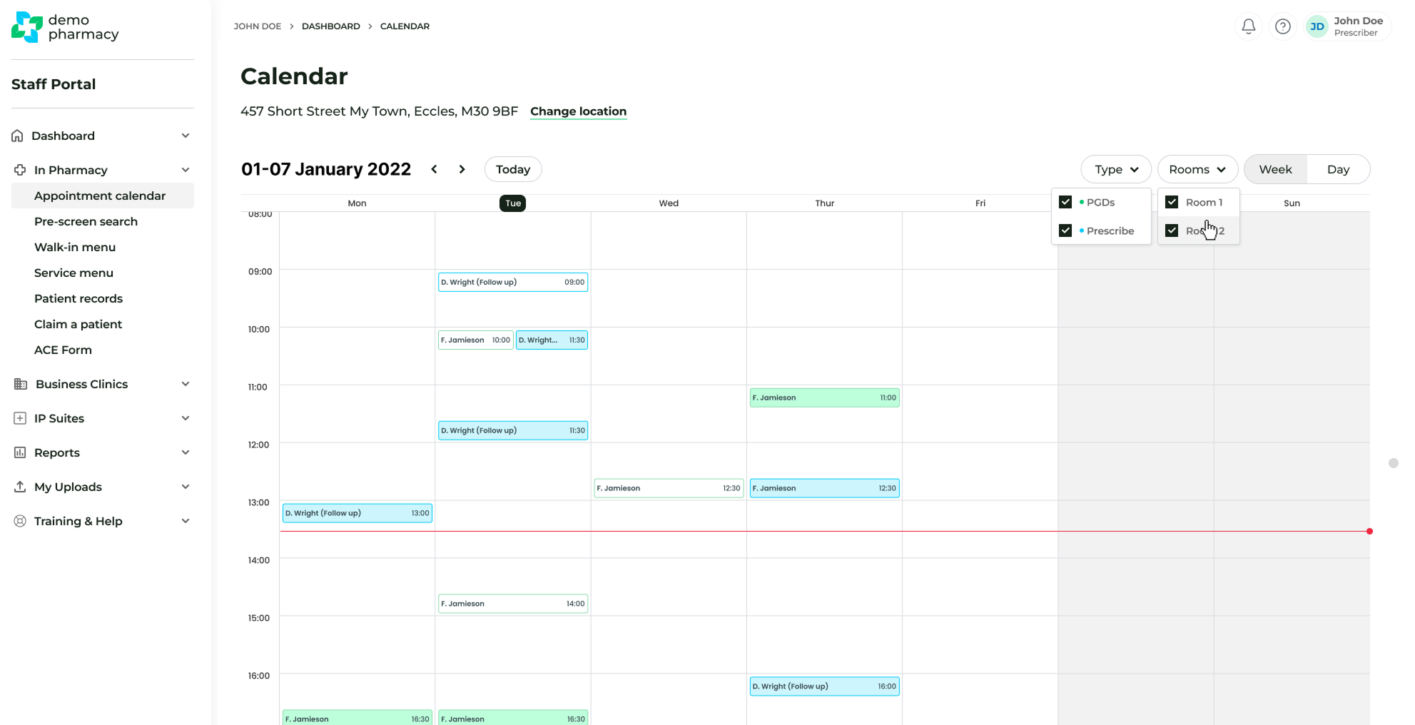 - Navigate to In Pharmacy > Appointment Calendar.