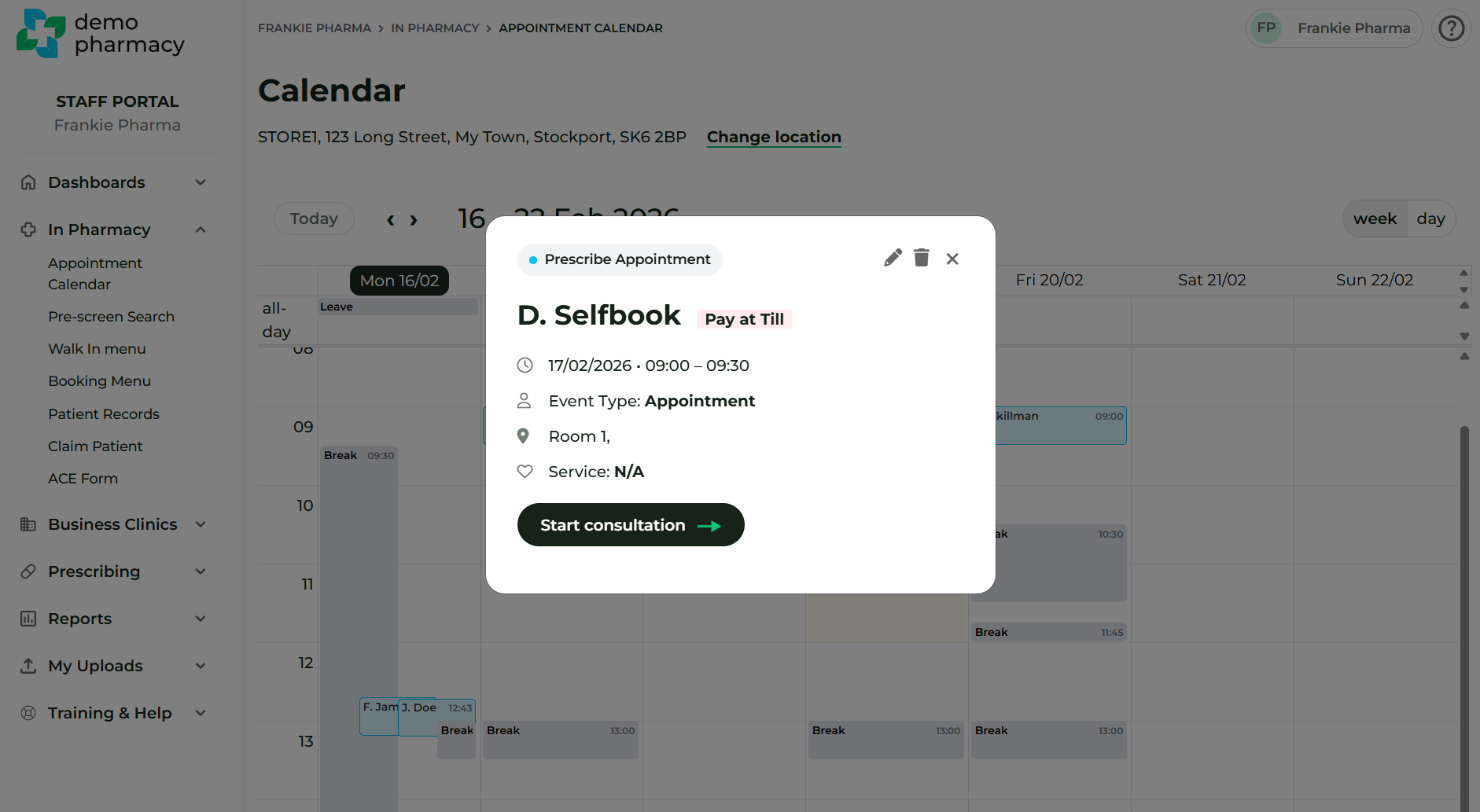 - From the Calendar: Click on the specific appointment slot in your calendar and select the 'Start Consultation' option.