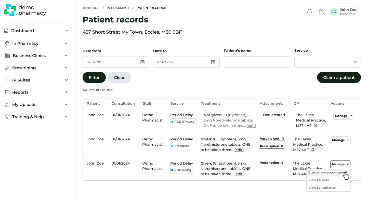 - Note: If you are part of a pharmacy group, this view is restricted to consultations completed at your specific pharmacy branch only.