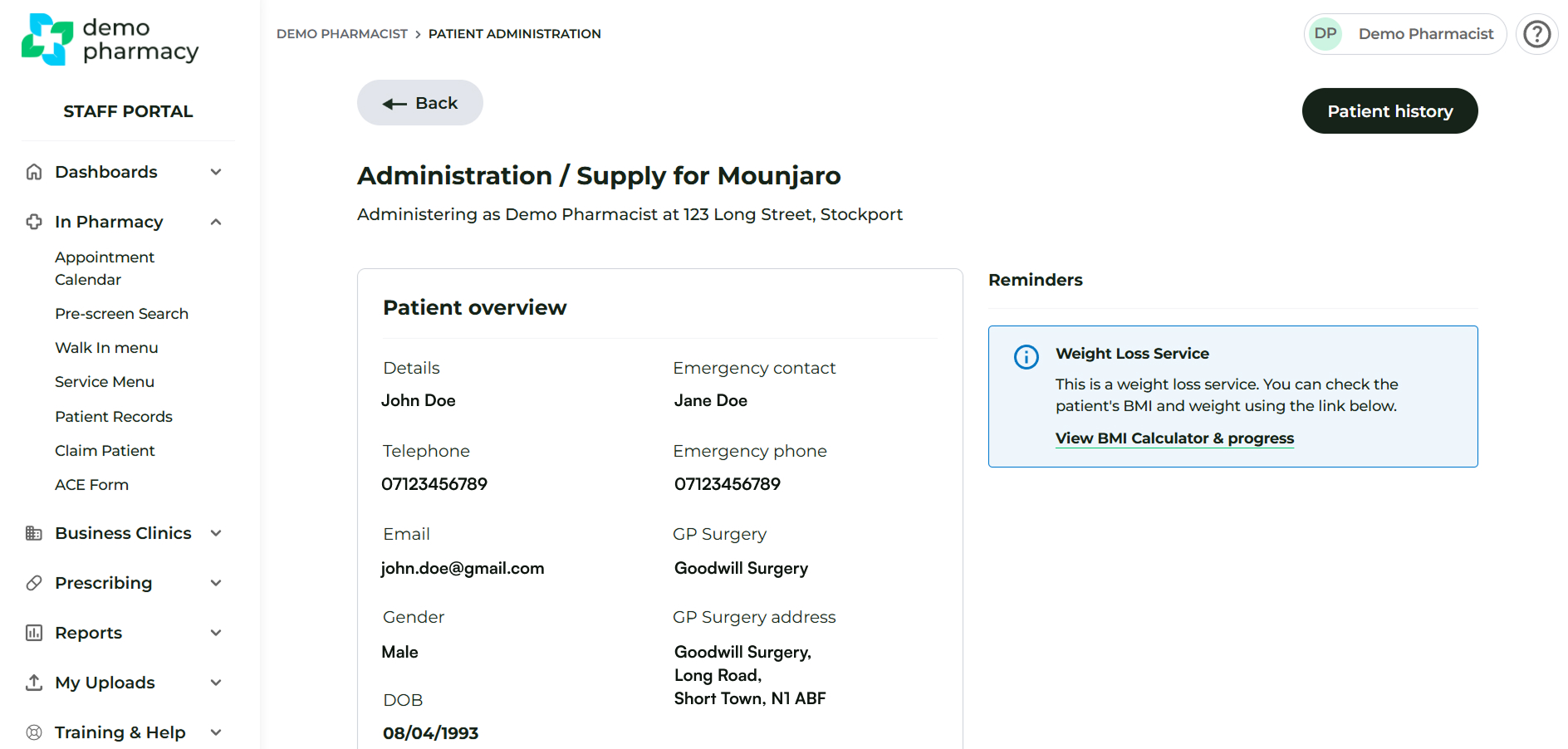 You can also view patient history by navigating to the In Pharmacy > Patient Records section.